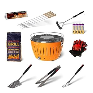 Revolio-No-1-rauchfreier-Holzkohlegrill-35-x-26-x-22-cm-Orange-Groes-Zubehr-Set-25-kg-Holzkohle-Anzndholz-Grillzange-Grillwender-Gabel-Metallschwamm-rostfreie-Spiee-Handschuhe-4-Batterien von Masse | Sep 10, 2019