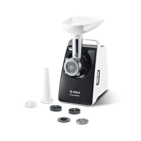 Bosch Fleischwolf CompactPower MFW3612A, elektrisch, Wurstaufsatz, Edelstahl Loch-Scheiben 4mm + 8mm, Messer…