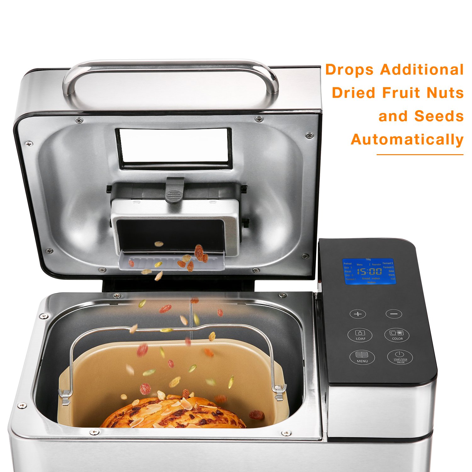 Intelligent: Mit 15-Stündige Timer können Sie jderzeit Ihr Brot backen. Am Morgen können Sie ganz ruhig und gemütlich frisches und warmes Brot genießen. Sie spart viel Zeit und haben sich besser um Ihre Gesundheit gekümmert.