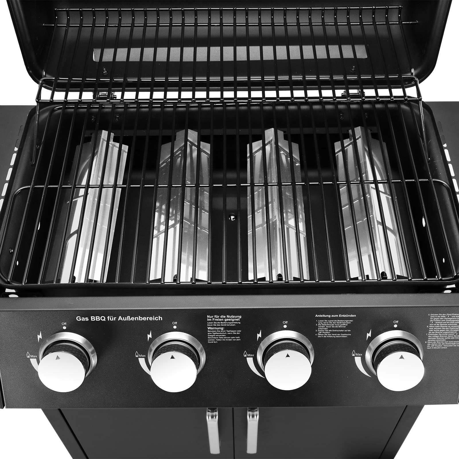Deuba Gasgrill 4 Hauptbrenner Edelstahl seitliche Halterungen Emaillierte Roste große Grillfläche Grillwagen Garten BBQ