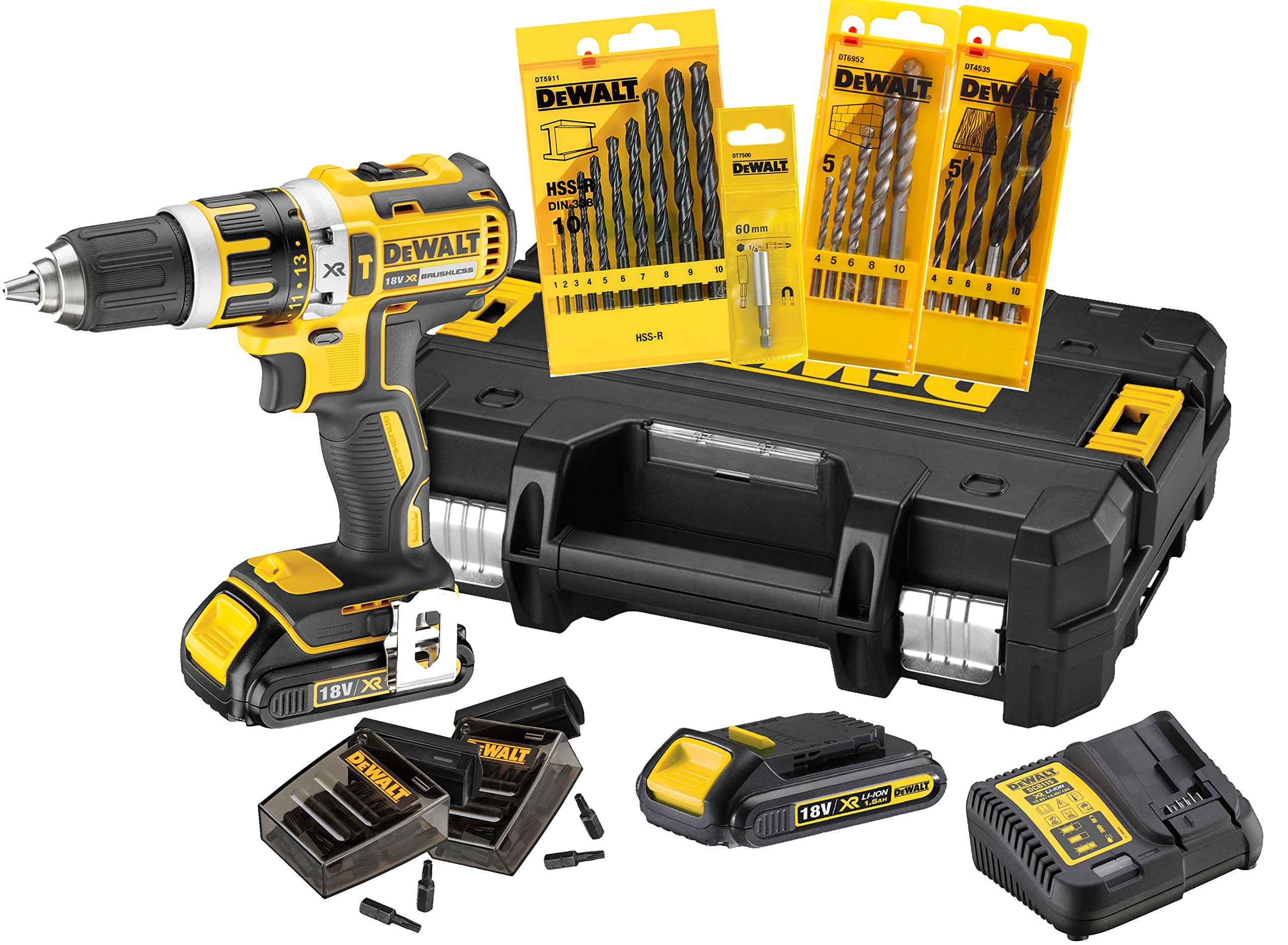 DeWalt Werkzeugset mit Schlagbohrschrauber zum Bohren in Holz & Metall, zum Schrauben & zum Schlagbohren in Mauerwerk plus einem umfangreichen Zubehörset / 3 Jahre Garantie (bei Online-Registrierung)