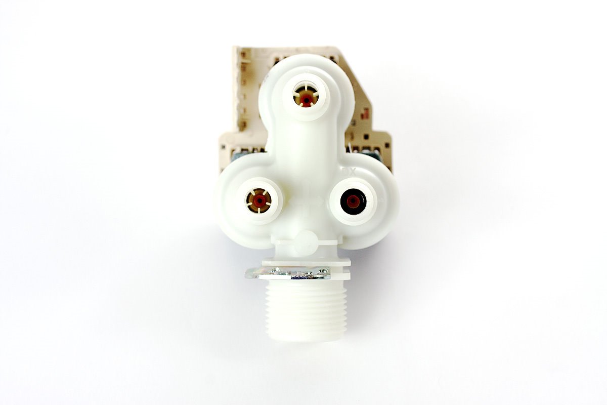 weitere Daten: möglicher Aufdruck Type 359 / Type359 Daten 3/4 Zoll, 3x12L 2 Spulen 120V / 1 Spule 230V 90° Einlauf / Auslauf Auslauf-Durchmesser 11,5mm 1 Auslauf reduziert Besonderheiten das besondere sind unterschiedliche Voltzahlen (120V/220V) der einzelnen Spulen, dies ist auf das WPS zurück zuführen – Geräte mit elektrischem Aquastop dieses Ventil ist nur für Geräte mit WPS von Miele (elektrischen Aquastop)