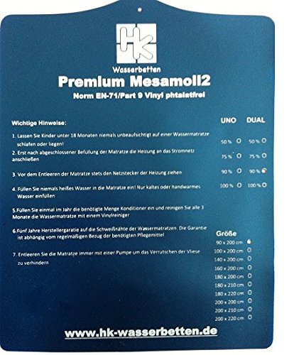 Kurzfassung: Denken Sie dran, dass ein Einsatz als Statussymbol möglich ist. Ja gut, dass Einzelne Mesamoll2® Wasserbettmatratze 90×220 cm Wasserkern Wassermatratze für DUAL Softside Wasserbett Außenkante… hochqualitativ ist, dürfte inzwischen klar sein. Machen Sie sich keine Sorgen. Gründe für eine Anschaffung gibt es bei dem hier genannten Modell mehr als ausreichend. Um welches Produkt es auch gehen mag, wir werden uns uns immer dafür aussprechen, denn wir wollen nach wie vor an HK-Wasserbetten festhalten. Testverfahren sind zweifelsohne phantastisch, wenn man wissen will, ob eine Anschaffung empfehlenswert ist. Vor anderen Maßnahmen ist es vorteilhaft, wenn Sie sich die Vorzüge des Angebots ansehen. Stellen Sie sich auf eine gescheite Quali und gute Preise ein. Lassen Sie Blitzkäufe bleiben, sondern überlegen Sie ausführlich, was Sie sich vom Artikel erhoffen. Hier hat sich HK-Wasserbetten große Mühe gegeben. Nehmen Sie sich für die Bestellung genügend Zeit, damit Sie auch das bestmögliche Produkt nach Hause holen.
