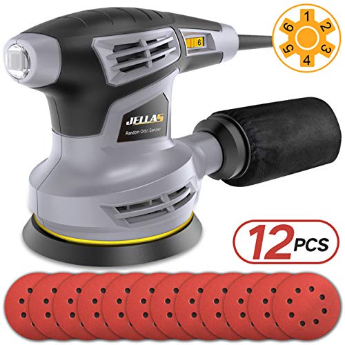 Jellas Exzenterschleifer mit Absaugung, Staubfangbehälter, staubgeschütztem Schalter & Getriebegehäuse – 280W – 125mm…
