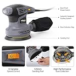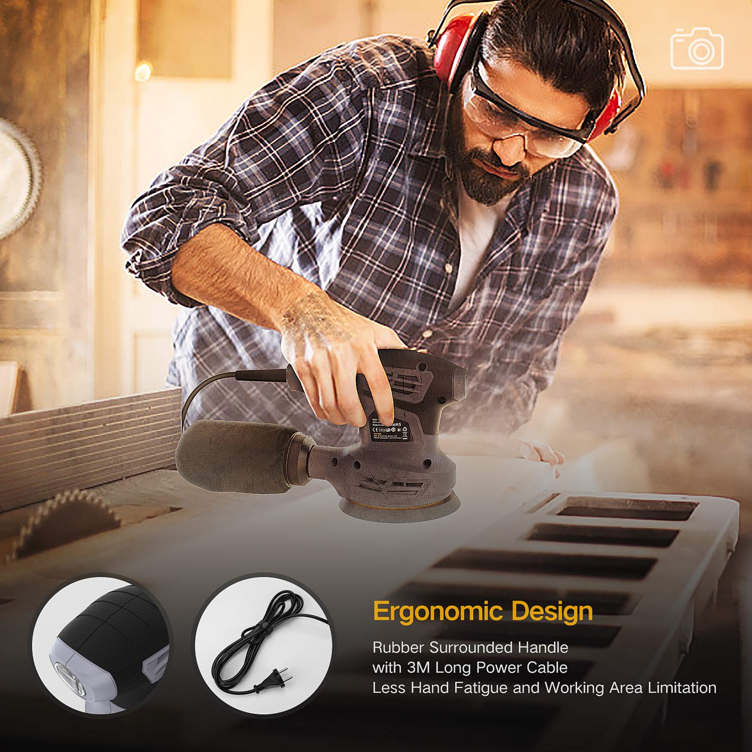 【Leistungsstarkes Staubsammelsystem】 Dieser Handschleifer verfügt über 8 Absauglöcher, wodurch dieser effektiver arbeitet als mit 6-7 Löchern. Der Staubsammelbeutel arbeitet effizienter als eine Staubsammelbox. Er fällt nicht während des Betriebs ab, verhindert ein Austreten von Staub beim Schleifen und hält Ihren Arbeitsplatz sauber