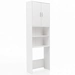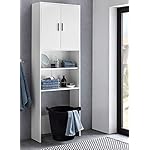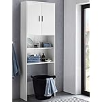 FineBuy Waschmaschinenschrank 190 x 64 cm Weiß | Waschmaschinen Überbau mit 2 Türen | Badregal 2 Ablagen | Hochschrank…
