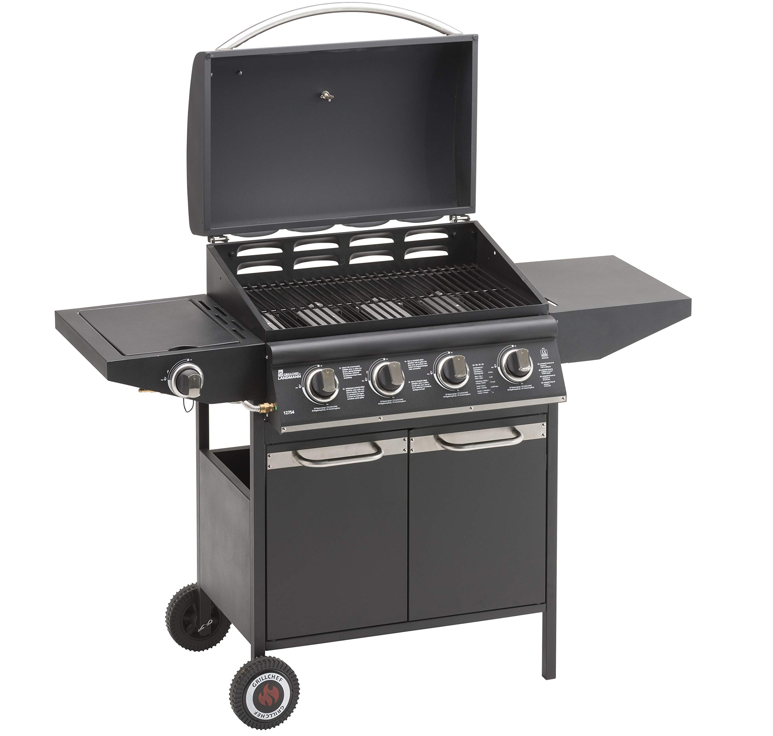 GrillChef Gasgrill 4Br und 1Sb, schwarz, 136 x 106 x 56 cm