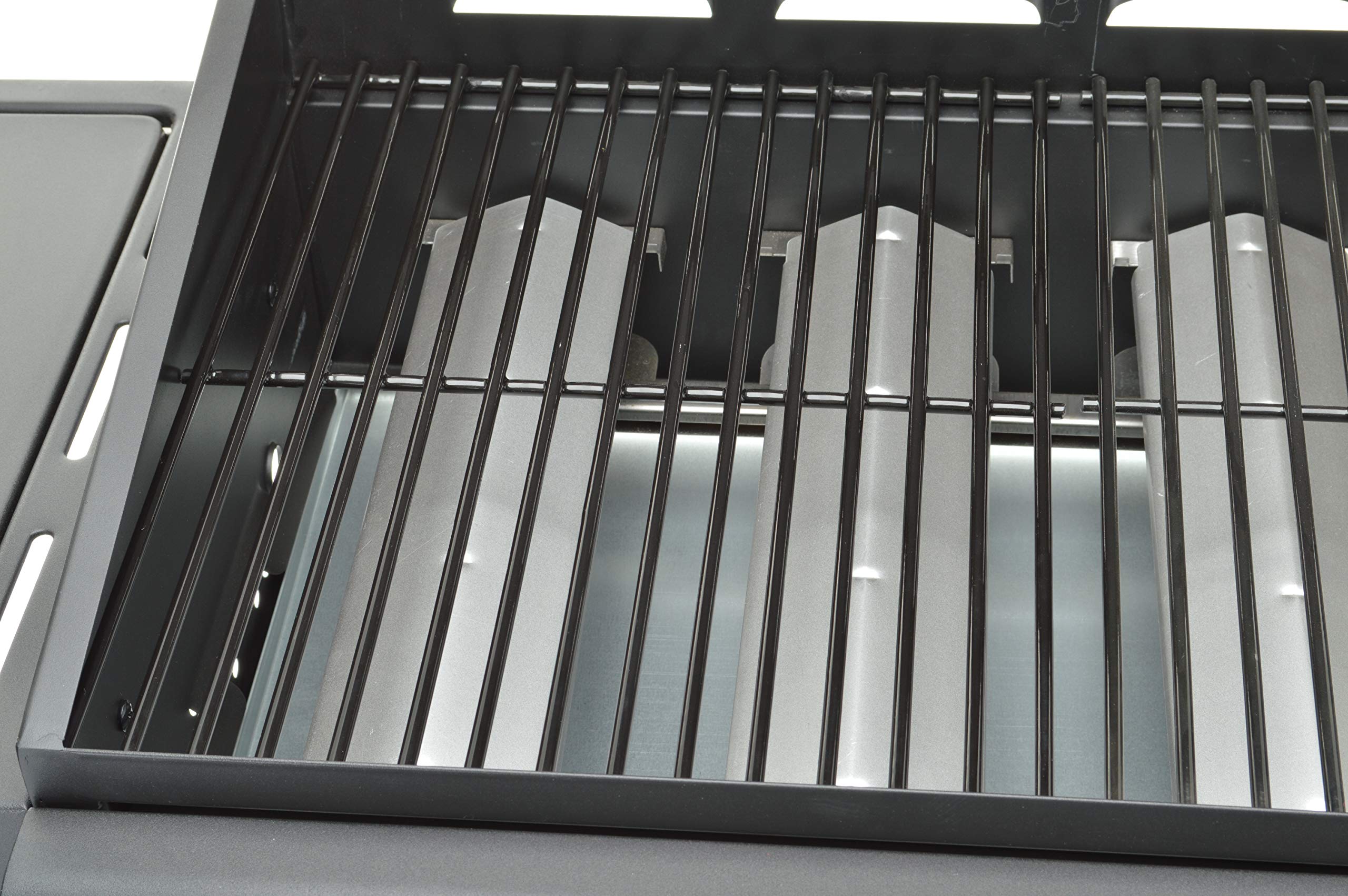 Emaillierter, zweigeteilter Grillrost mit einer großzügigen Grillfläche (65 x 40 cm) und aluminierten Brennerabdeckungen