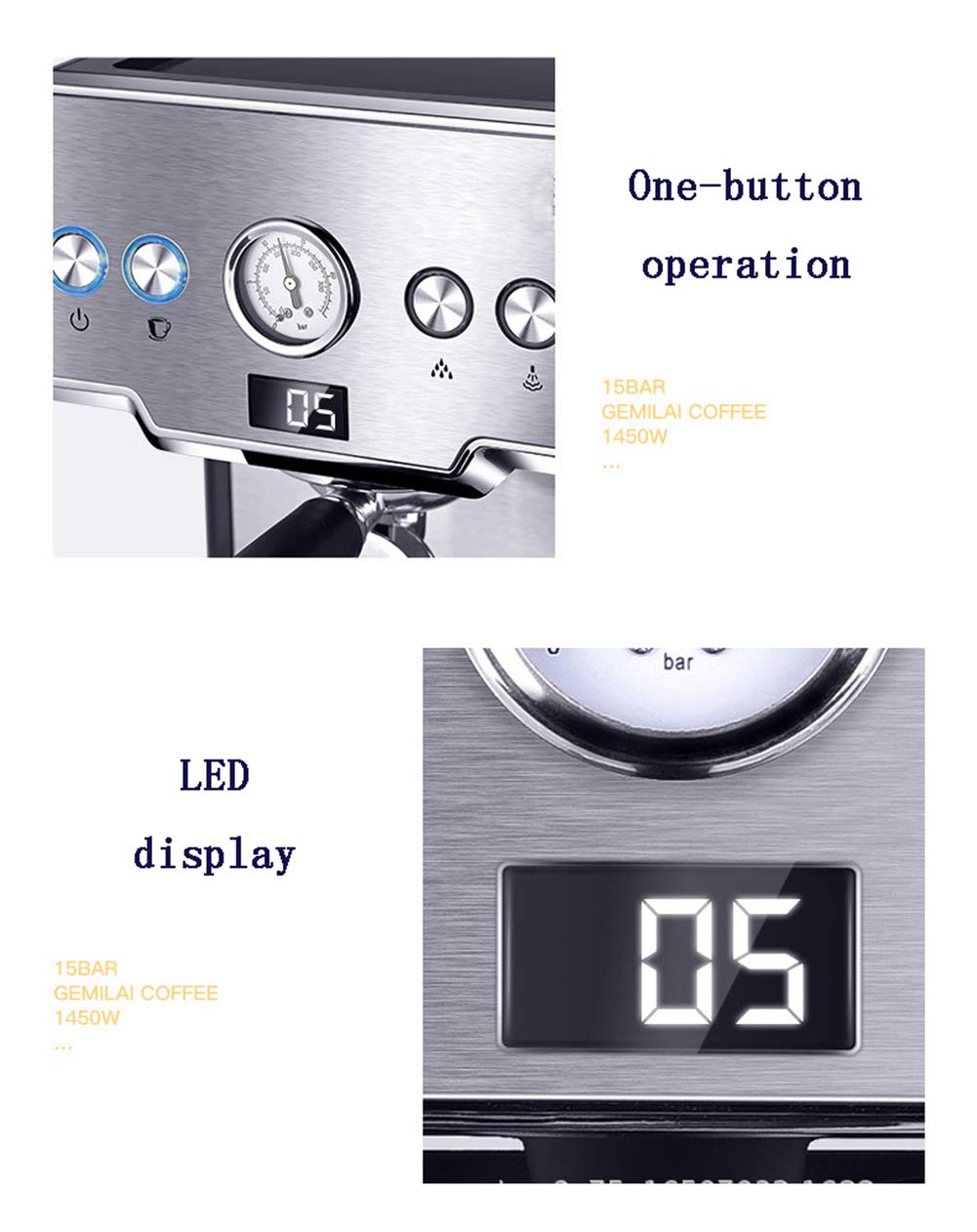 ▲ 15 bar Pumpendrucksystem: Genießen Sie köstlichen italienischen Espresso, Americano und Macchiato. Milchaufschäumbecher aus Edelstahl für die einfache Zubereitung von Lattes und Cappuccinos.