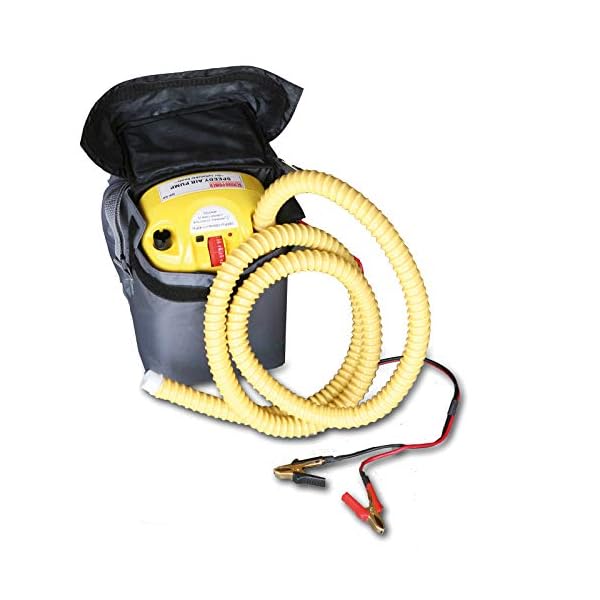 Elektrische Pumpe zum schnellen befüllen von Schlauchbooten. Einfach an die Autobatterie anzuschließen.