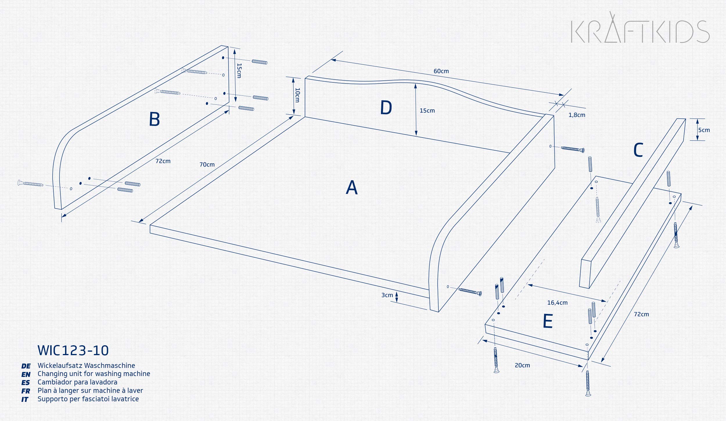 KraftKids Wickelaufsatz weiß passend für alle Waschmaschinen oder Trockner