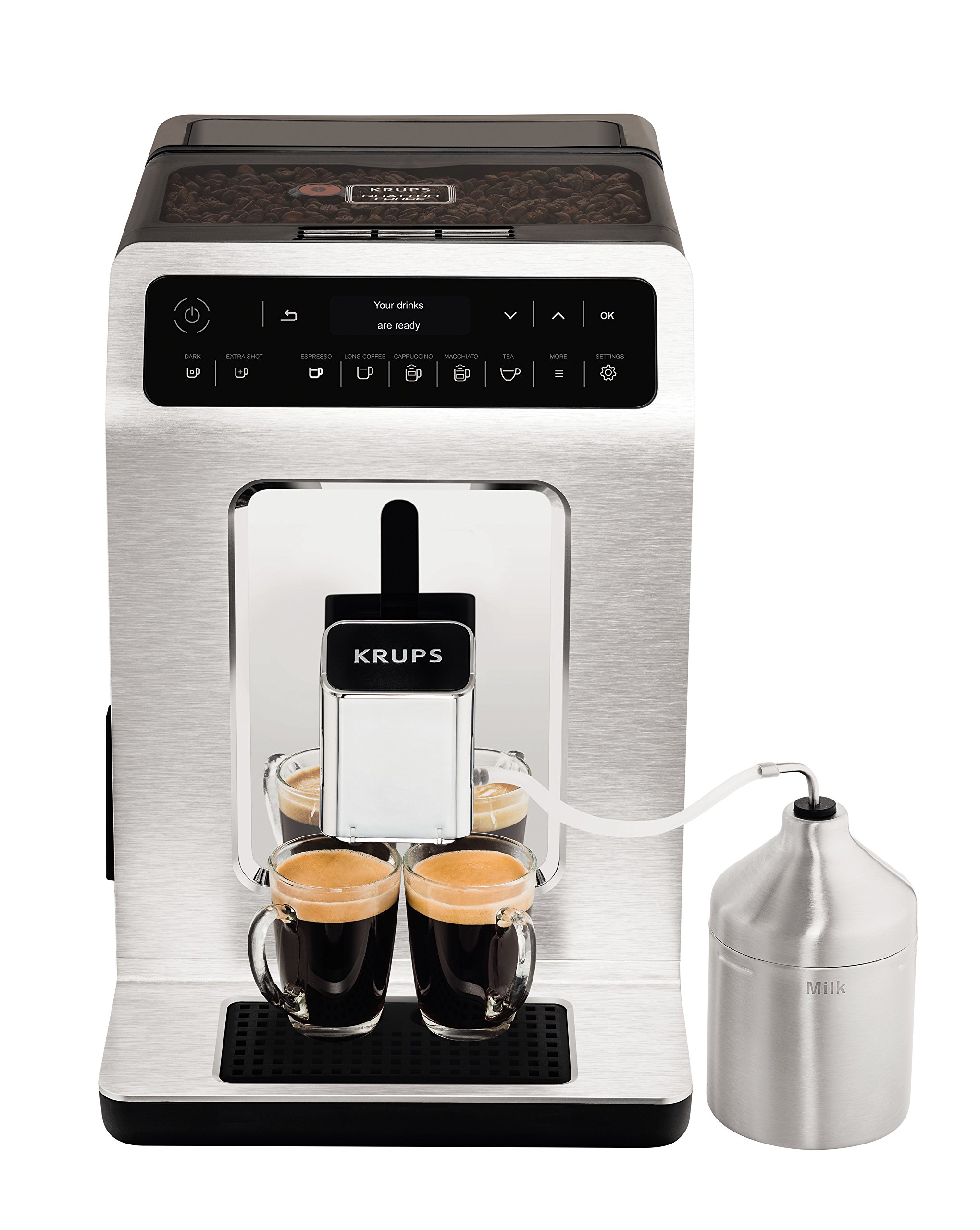 Krups EA891C Evidence Kaffevollautomat, OLED- Display, Barista Quattro Force Technologie, 12 Kaffee-Variationen, 3 Tee…