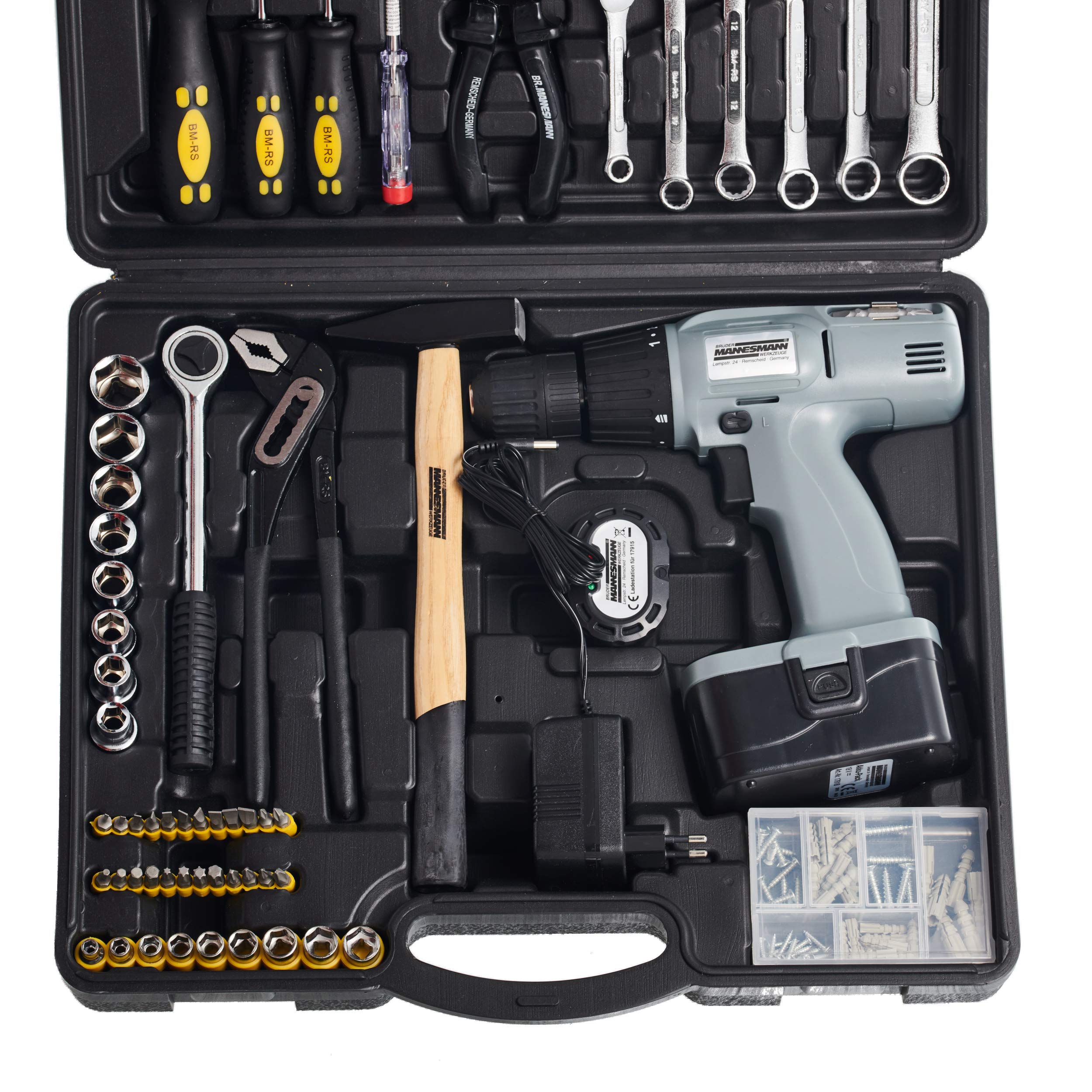Mannesmann M17975 Werkzeugkoffer 75-teilig mit Akkubohrschrauber 18 Volt