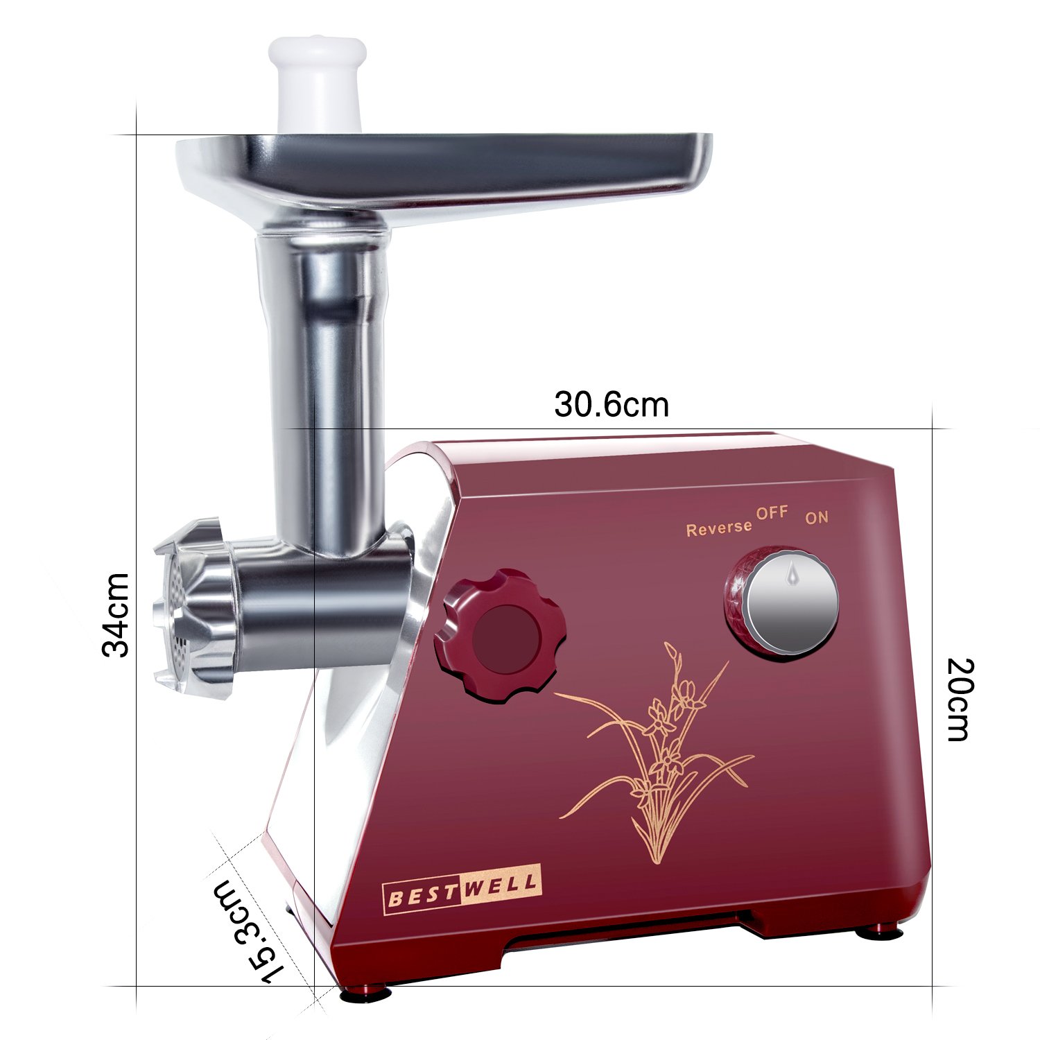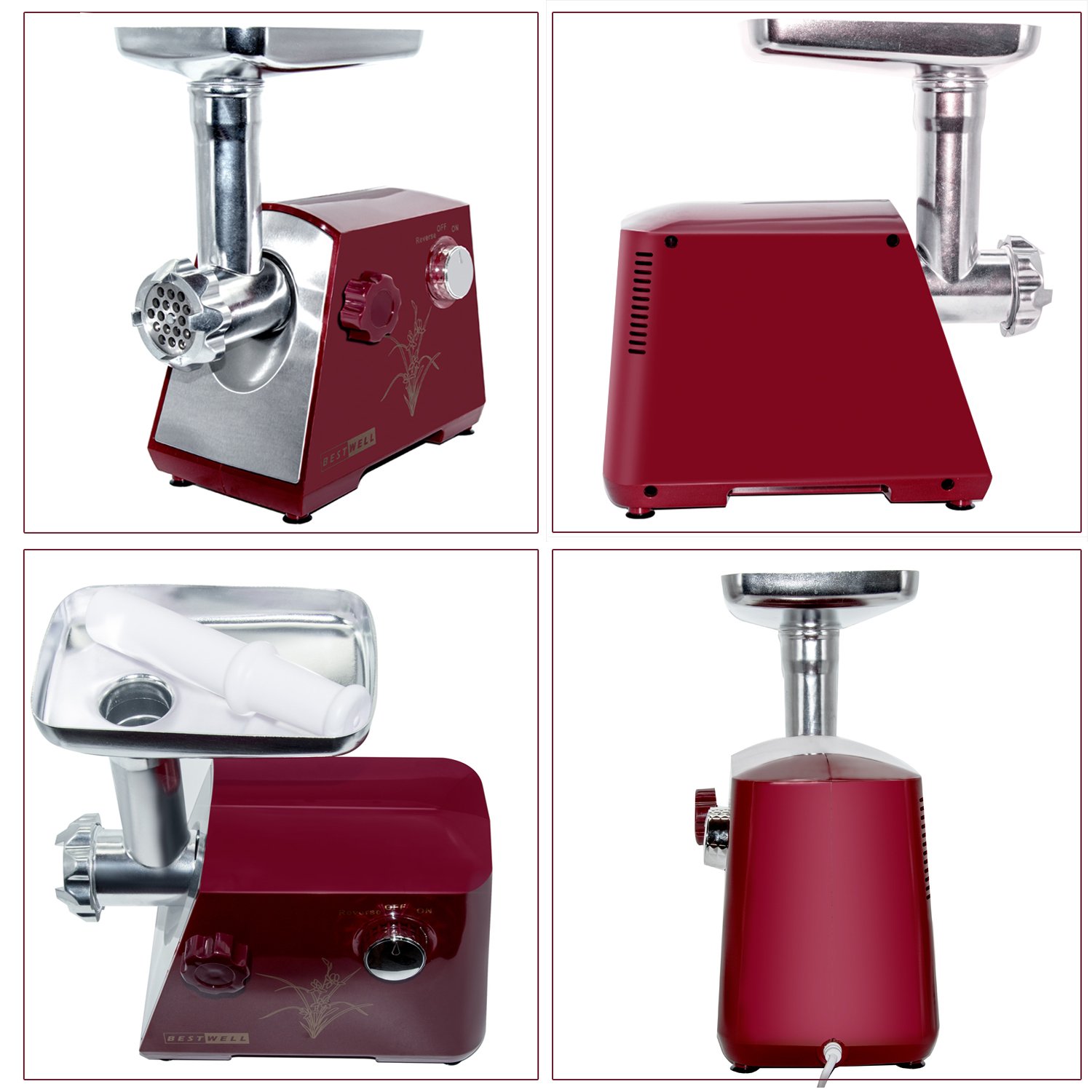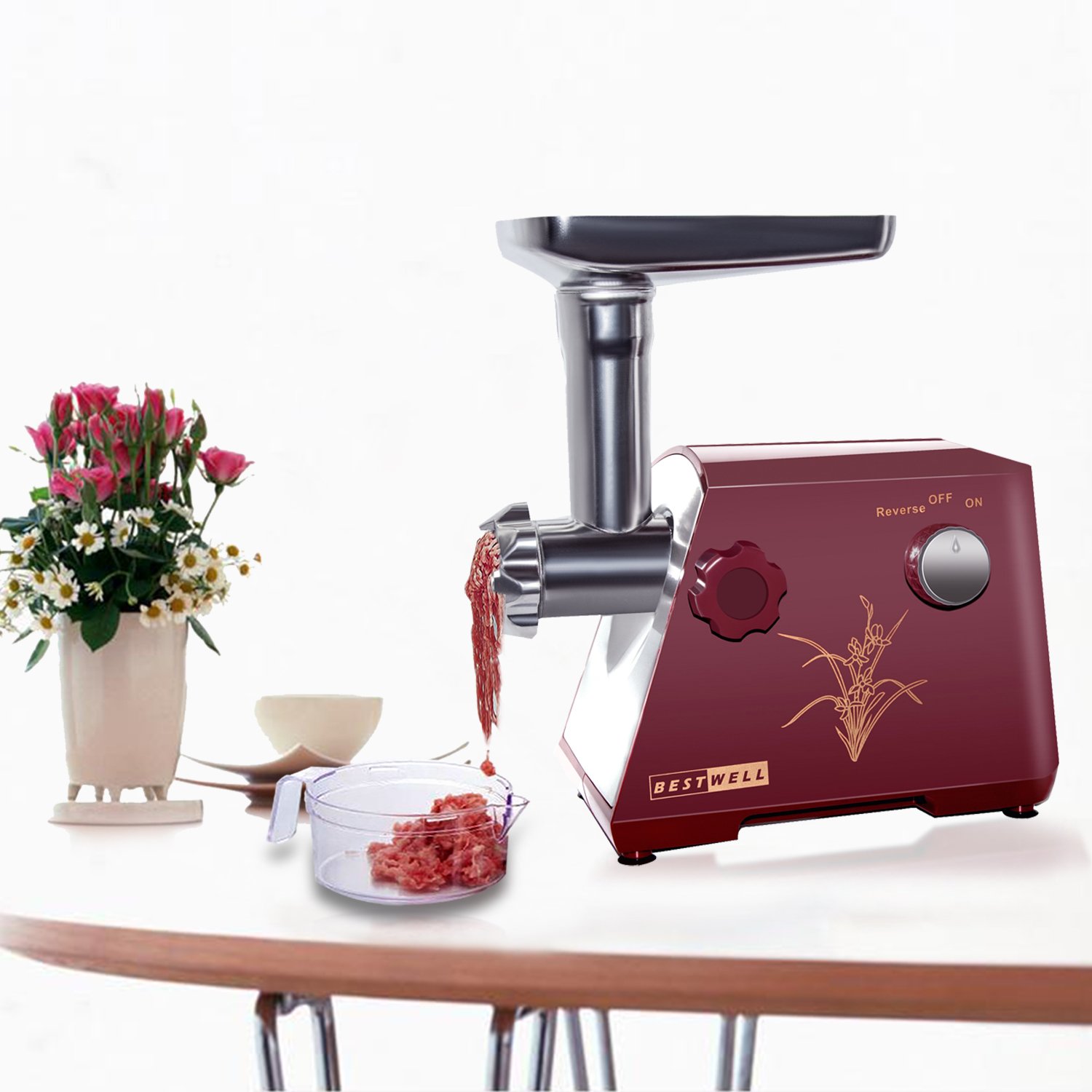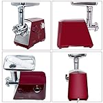 Auswechselbare Schneidplatten.Der elektrische Fleischwolf hat eine beeindruckende drei Klingen perfekt für jeden Fleischbedarf.Fleischstücke können in 3 verschiedene Stärken zerkleinert werden. Fein, mittel oder grob. natürlich-zerkleinerten Scheiben zerkleinert werden