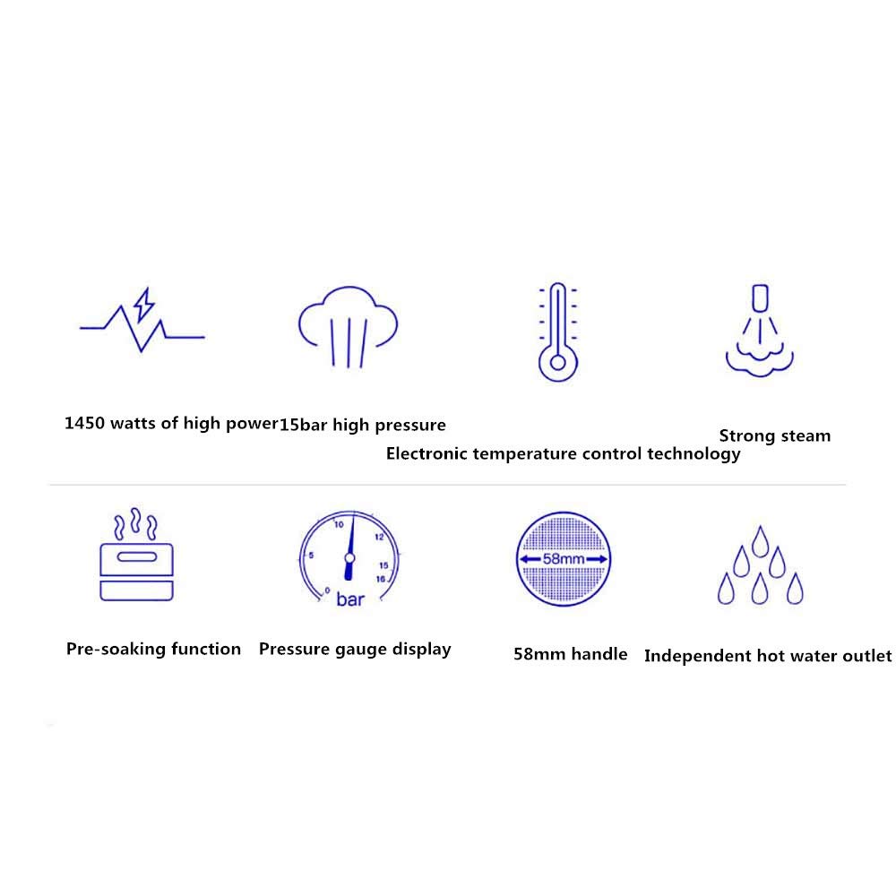 OOFAYWFD Halbautomatische Kaffeemaschine, 1450W High-Power-Pumpendruck Kaffeemaschine mit elektronischer Anzeige 15BAR 1…