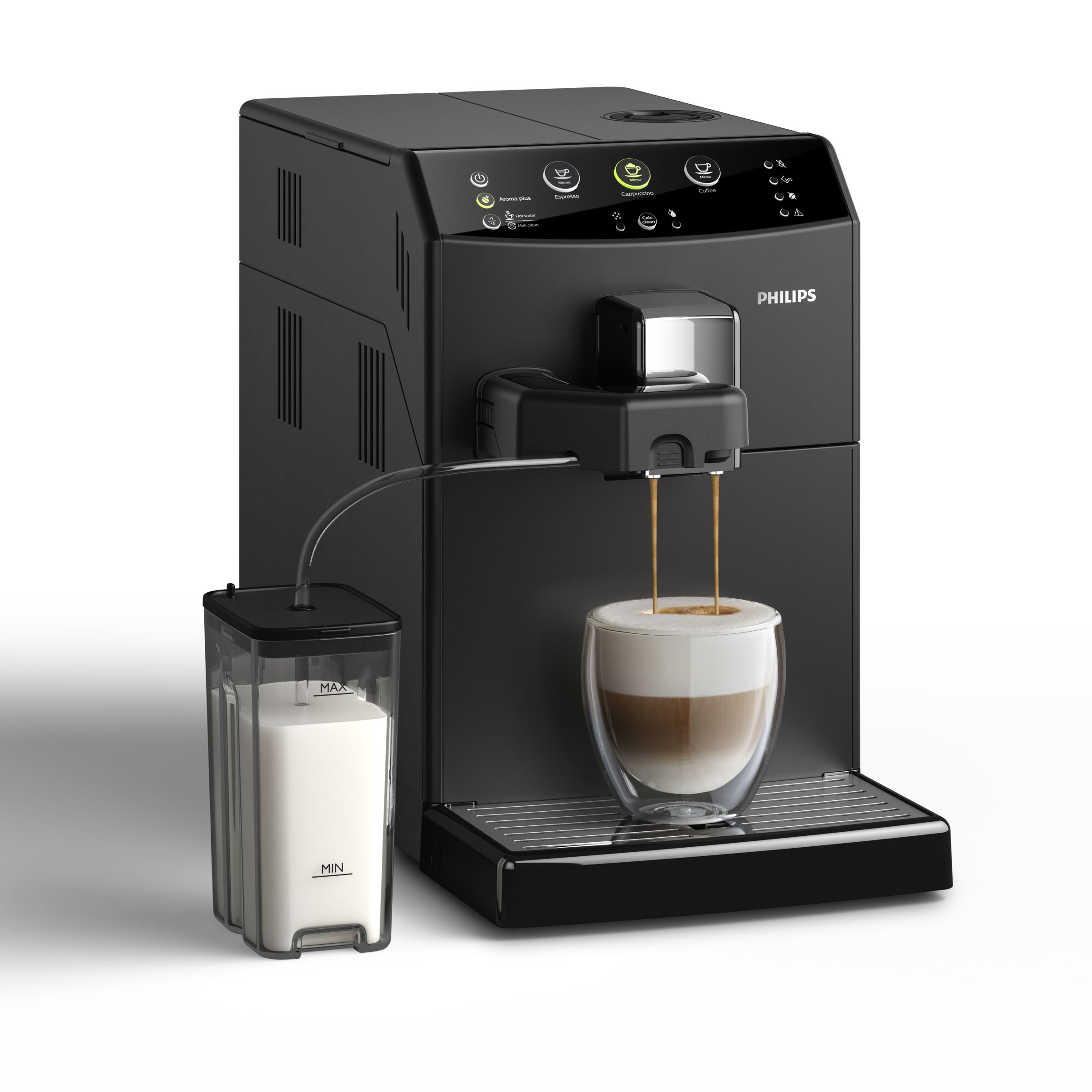 Cremiger Cappuccino auf Knopfdruck dank integriertem automatischem Milchaufschäumer