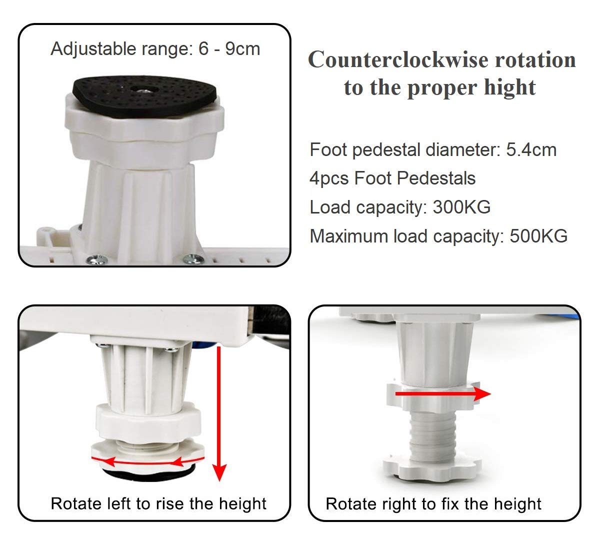 Waschmaschine Sockel in hohen Qualität, besteht aus Stahl und Kunststoff von guter Qualität, besitzt die starke Unterlage eine gute Korrosionsbeständigkeit in feuchter Umgebung und gute Stabilität