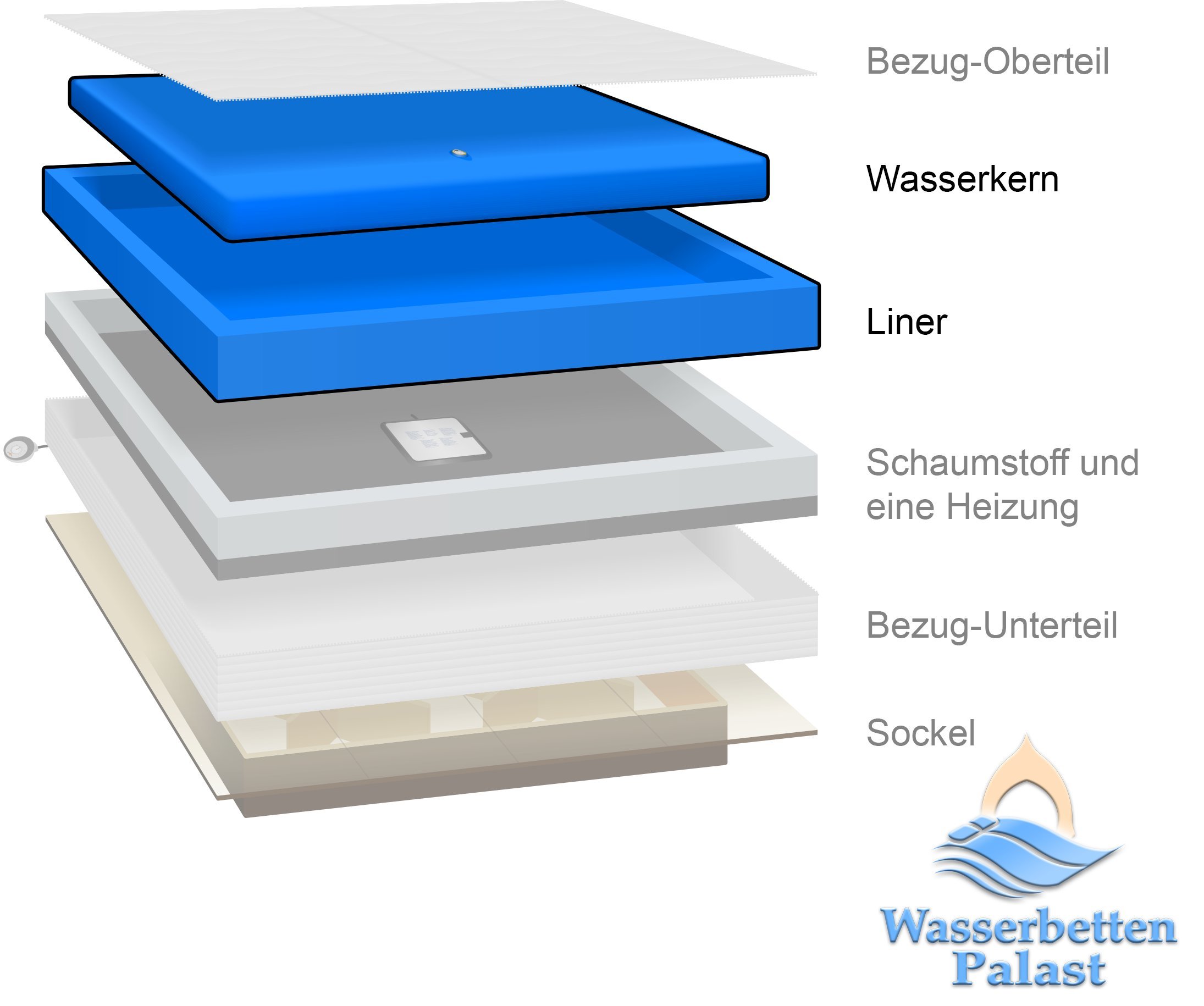 Premium Comfort Wasserkern inkl. Liner – Vinyl-Schutzfolie für Wasserbett oder Wasserbettmatratze – für Bettgröße…