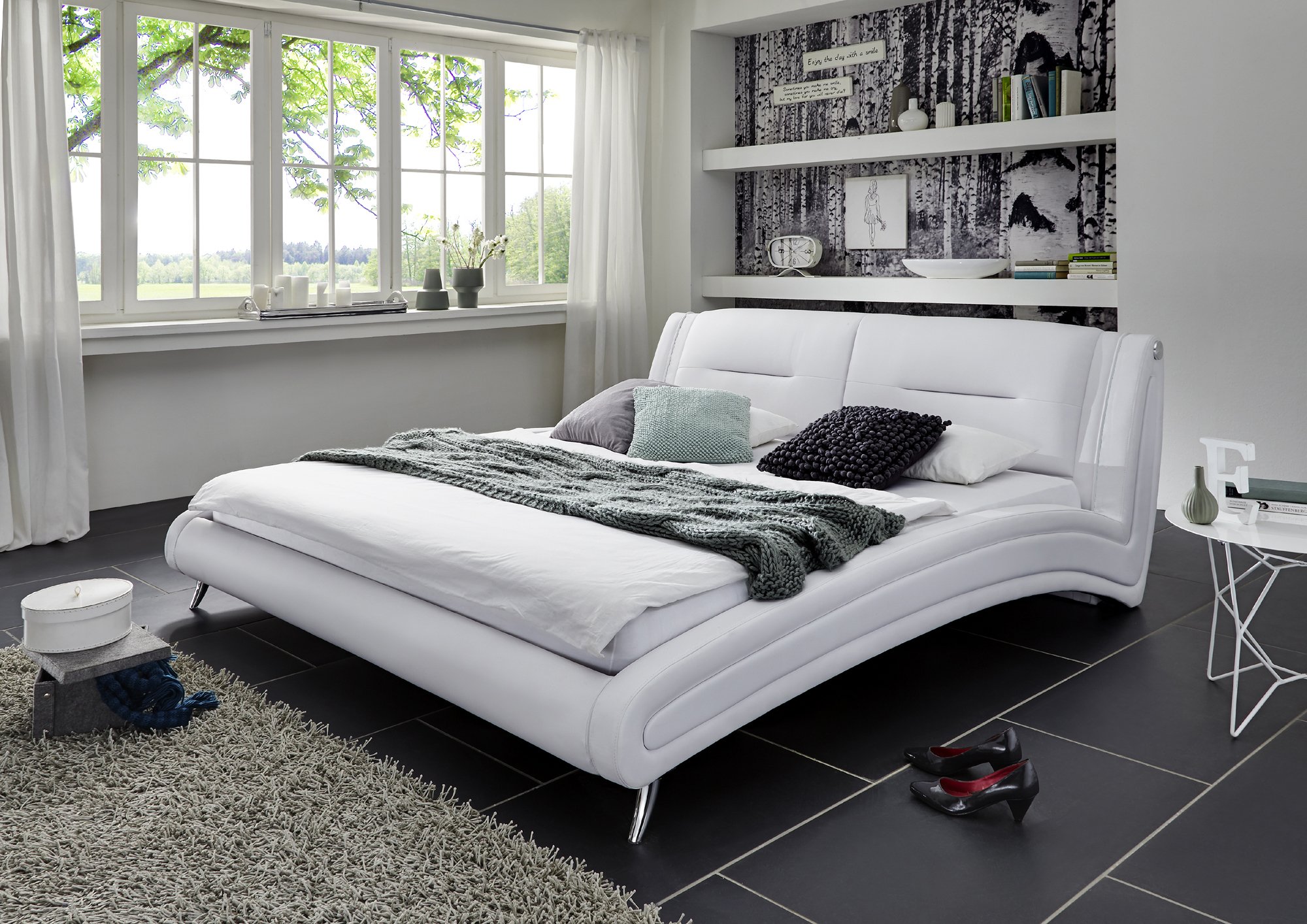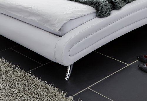 • Hochwertige Materialien – Das Bett hat einen weißen Kunstlederbezug und edle Chromfüße. Diese setzen geschickte Akzente gegenüber den Bezügen aus Kunstleder. Das elegante Polsterbett wertet jedes Schlafzimmer auf und lädt zum Träumen ein.
