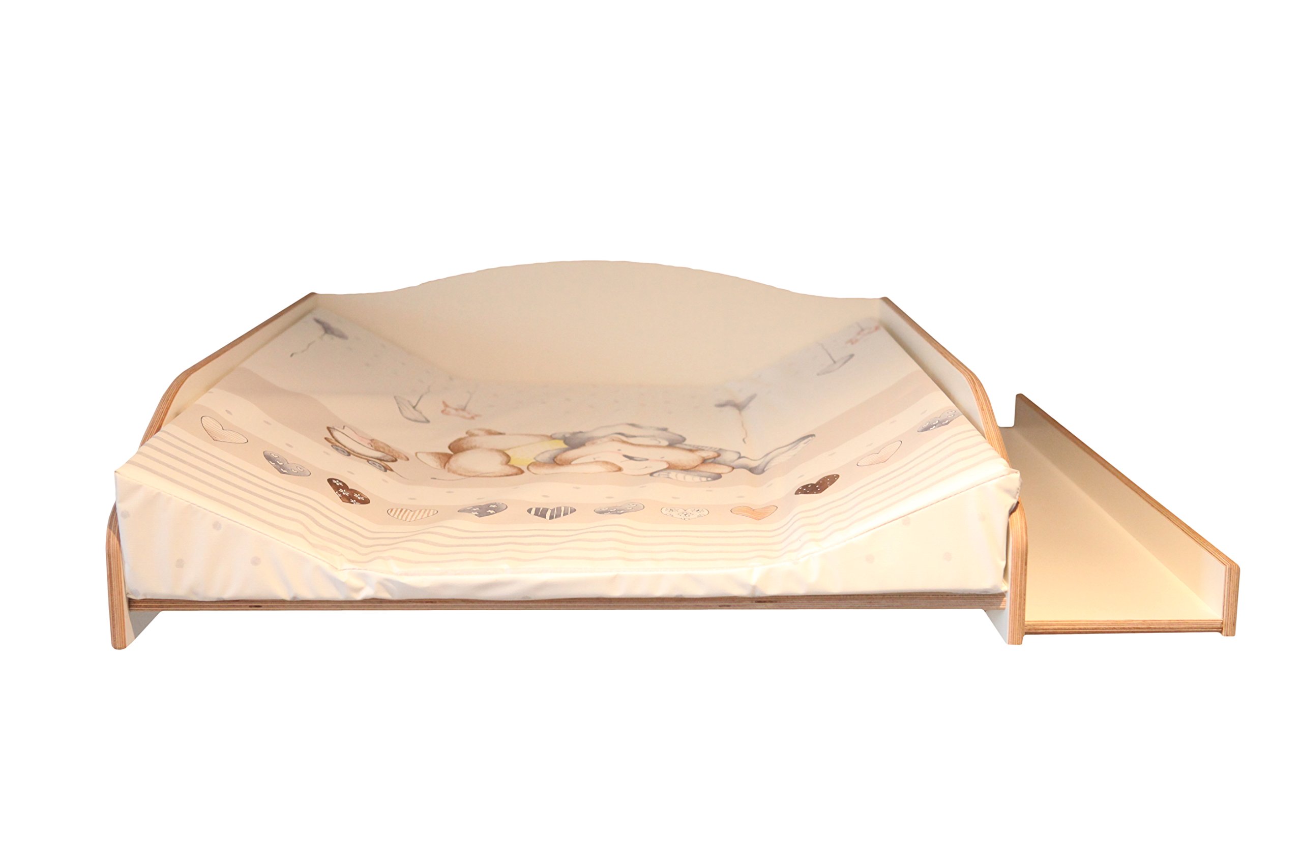 Wickeltischaufsatz weiß mit seitlicher Ablagefläche, aus echtem Birkenholz, Wickelfläche 60x70cm, Wickelauflage…